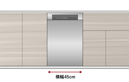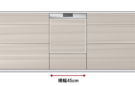 スリムな45cm幅タイプは、同じ幅の国内ビルトイン食器洗い機からの入れ替えや、既存のキッチンに後付け設置しやすいタイプとなります。