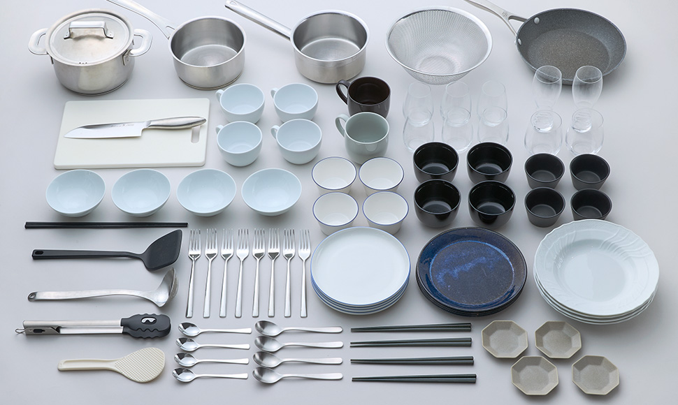 5人分の食器と調理器具を