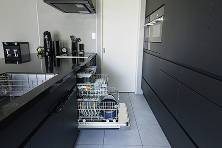 パナソニックの引き出し型ビルトイン食器洗い機から、ミーレに交換したIさん。フロントオープン型に変えたことで食器の出し入れが楽になったそう。